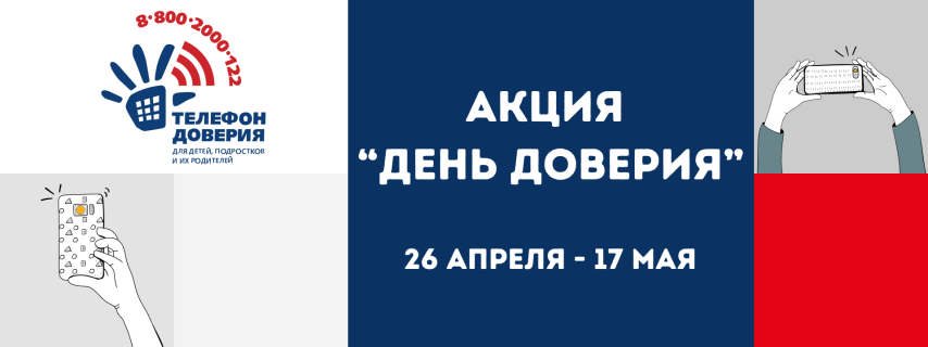 Фонд поддержки детей, находящихся в трудной жизненной ситуации  информирует  о проведении в 2021 году акции «День доверия»  приуроченной к Международному дню детского телефона доверия и направленной на продвижение Общероссийского детского телефона доверия 8-800-2000-122 среди детей, подростков и их родителей. В акции примут участие известные психологи и педагоги, представители шоу-бизнеса и популярные блогеры.