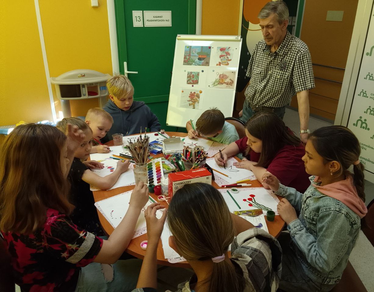 Специальным гостем стал известный ковровский художник Рябинин Николай Николаевич, который провел для воспитанников отделения увлекательный мастер-класс, посвященный великому празднику Победы.
