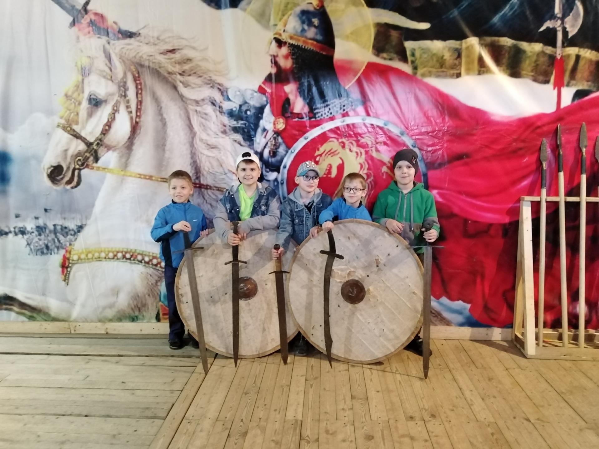 На скотном дворе дети смогли не просто увидеть домашних животных – лошадь, корову, свиней и кроликов, но и потрогать их, и даже покормить. Особенно восхитил мальчишек древнерусский тир. С помощью инструктора ребята смогли попробовать свои силы в стрельбе из лука, владении мечом и щитом, примерили кольчугу.