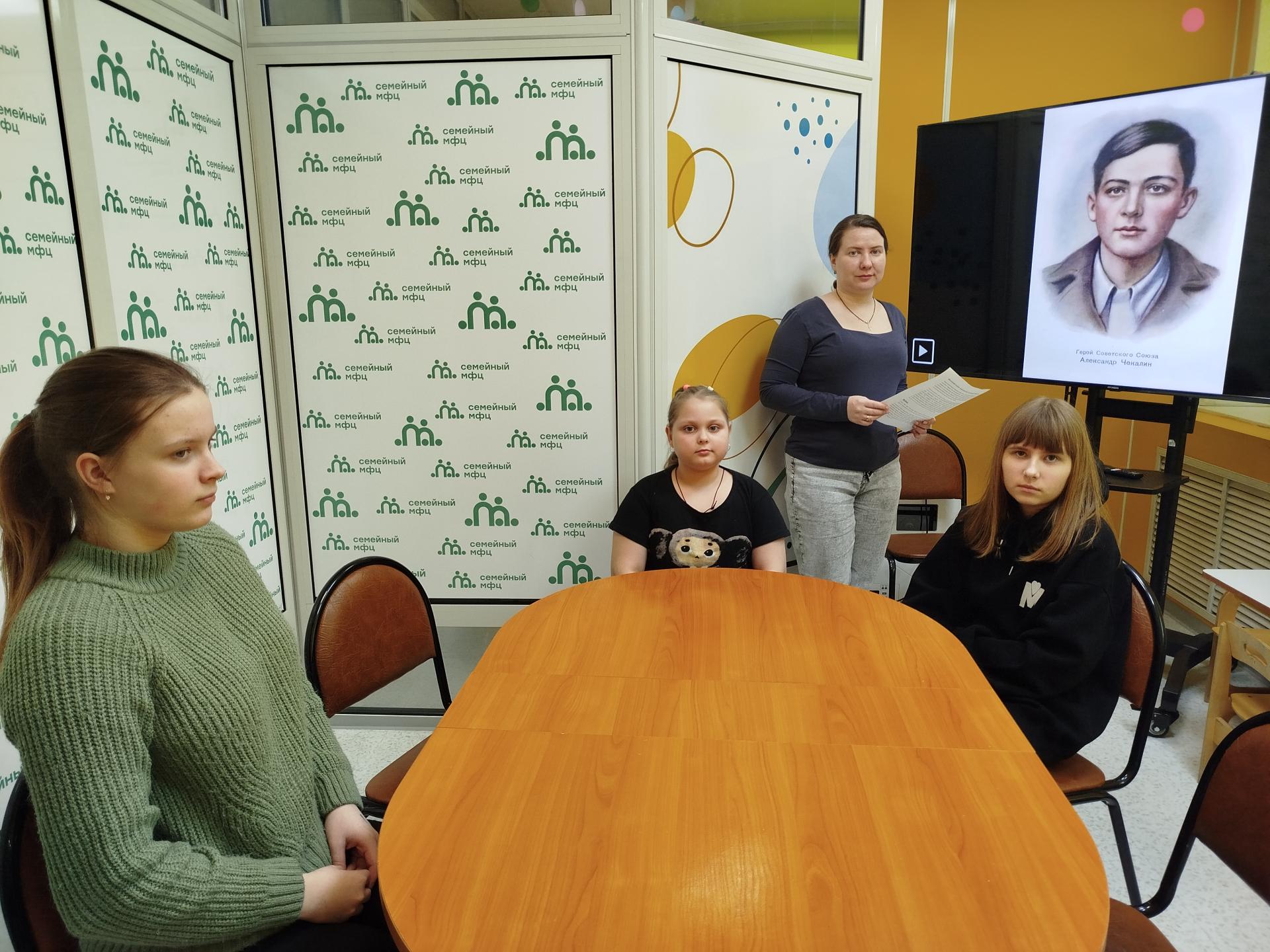Специалист отделения реабилитации детей с ограниченными возможностями и ранней помощи в рамках цикла исторических бесед «Мы помним ваши имена» рассказала детям-инвалидам о Герое Советского Союза Александре Чекалине.