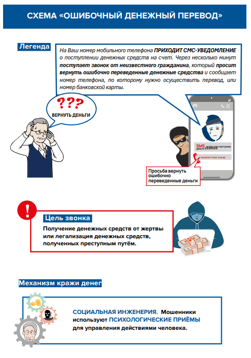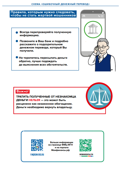 В целях повышения финансовой грамотности предлагаем Вам ознакомиться с мошеннической схемой "Ошибочный денежный перевод".