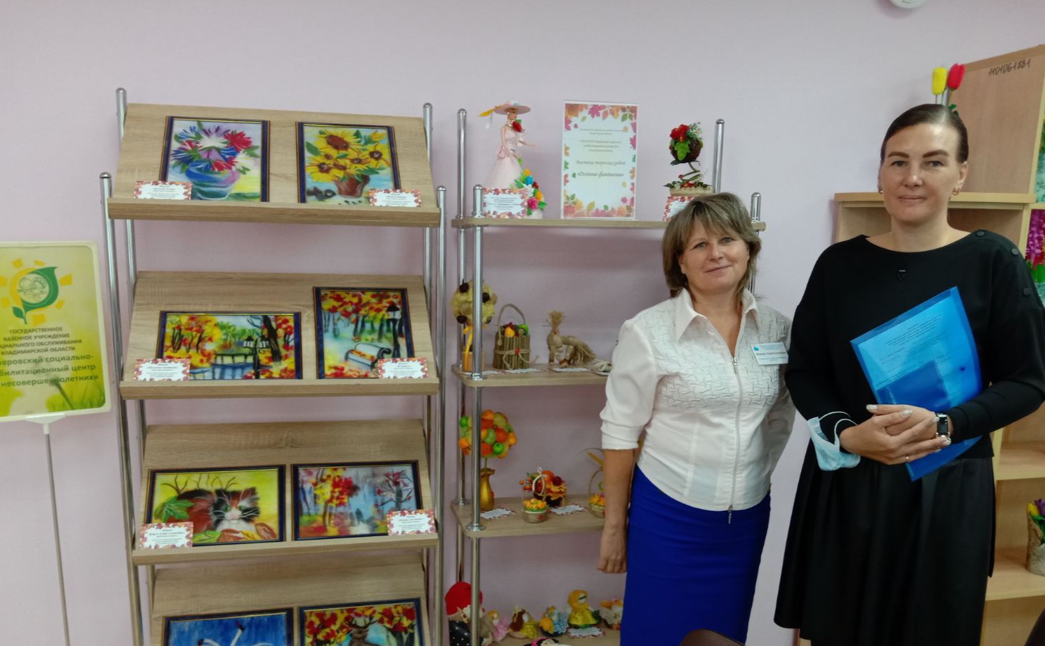 В конференц-зале, где проходила торжественная часть, была организована выставка творческих работ, сделанных руками специалистов стационарного отделения ГКУСО ВО «Ковровский социально-реабилитационный центр для несовершеннолетних». Были представлены работы, выполненные в технике шерстяная акварель, а также поделки, изготовленные из природного материала, шпагата, крупы.