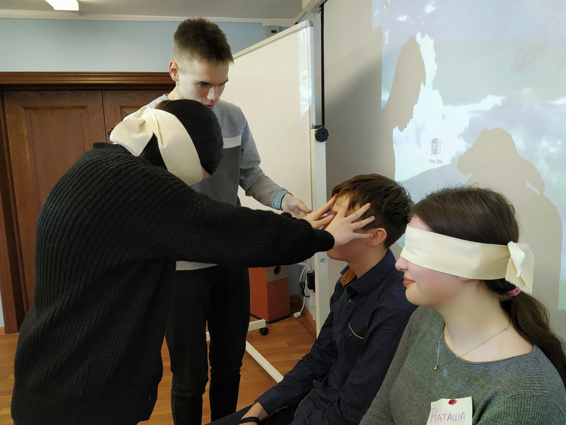 На занятиях использовались упражнения-имитации: «Разговор слепого, глухого и немого», «Слепой паровозик», в которых молодым людям удалось ощутить, как чувствует себя человек с ограничениями в здоровье в самых обыденных ситуациях; психологические игры: «Инопланетяне», «Козы и волки», в которых нужно было суметь найти общий язык друг с другом; упражнения на осознание перспектив: «Домино», «Биржа».