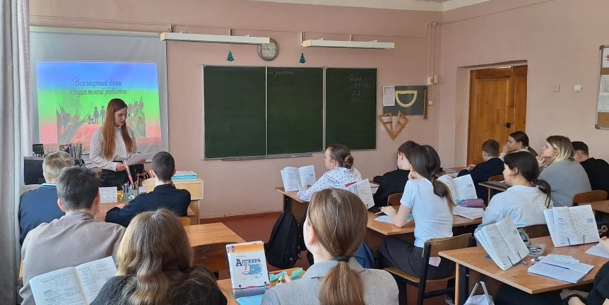Специалист по социальной работе отделения профилактики провела для учащихся 7 класса школы № 8 г. Коврова мероприятие, посвященное Всемирному дню социальной работы и вопросам информационной безопасности.