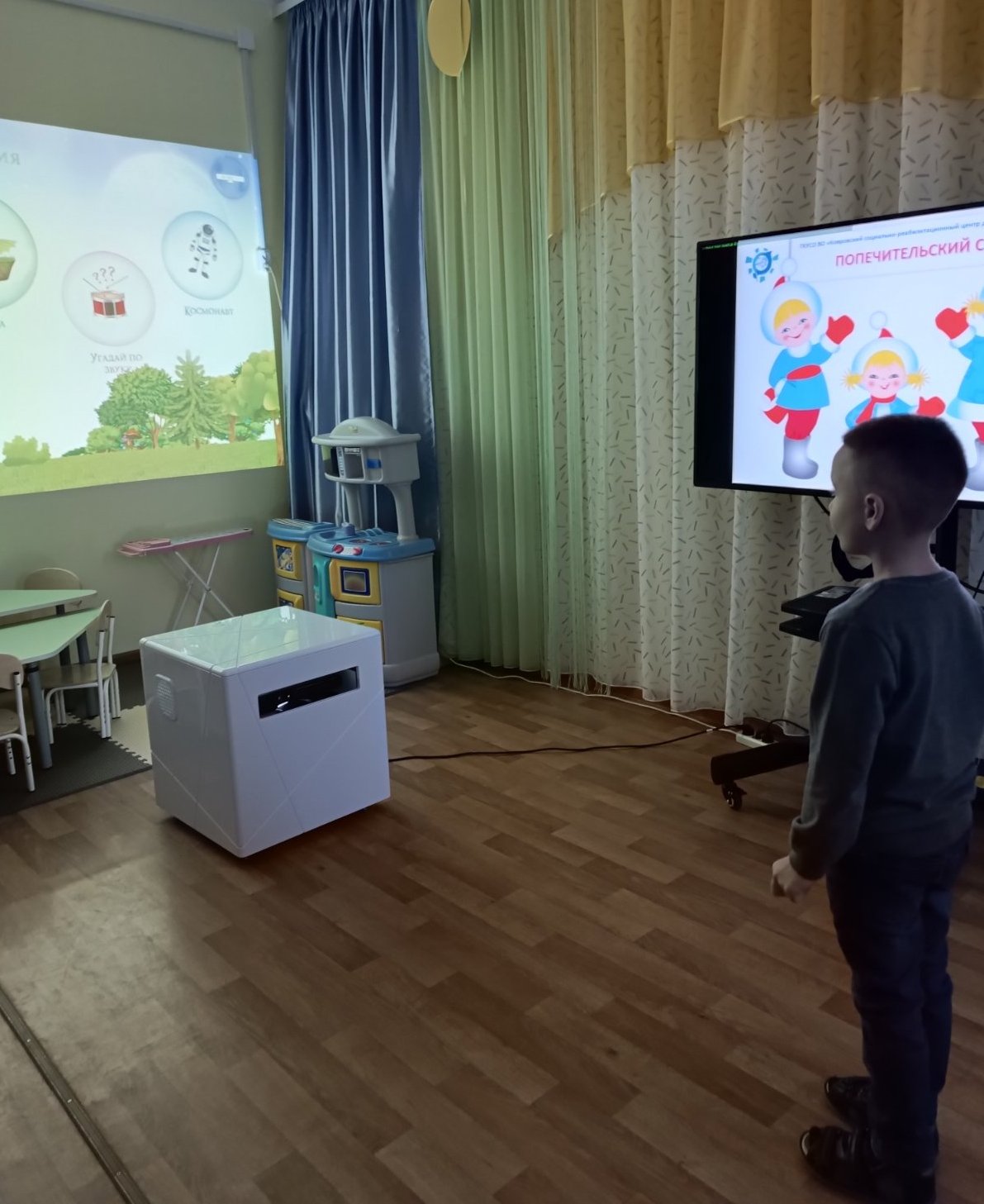 Специалисты по комплексной реабилитации Оксана Олеговна Сиитова и Анна Валерьевна Смирнова, а также логопед Наталья Алексеевна Мухина, совместно с детьми в форме открытых занятий показали гостям в работе инновационное оборудование, приобретенное при софинансировании Фонда поддержки детей, находящихся в трудной жизненной ситуации, в рамках реализации Комплекса мер «Территория возможностей», направленного на повышение качества жизни детей с инвалидностью: «Бизиборд Макси», интерактивный стол логопеда, программно-мультимедийный комплекс «Кубик».